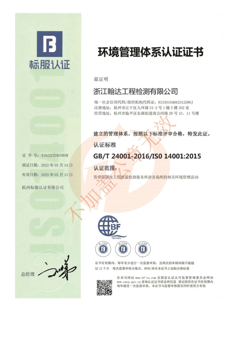 環境管理體系認證證書